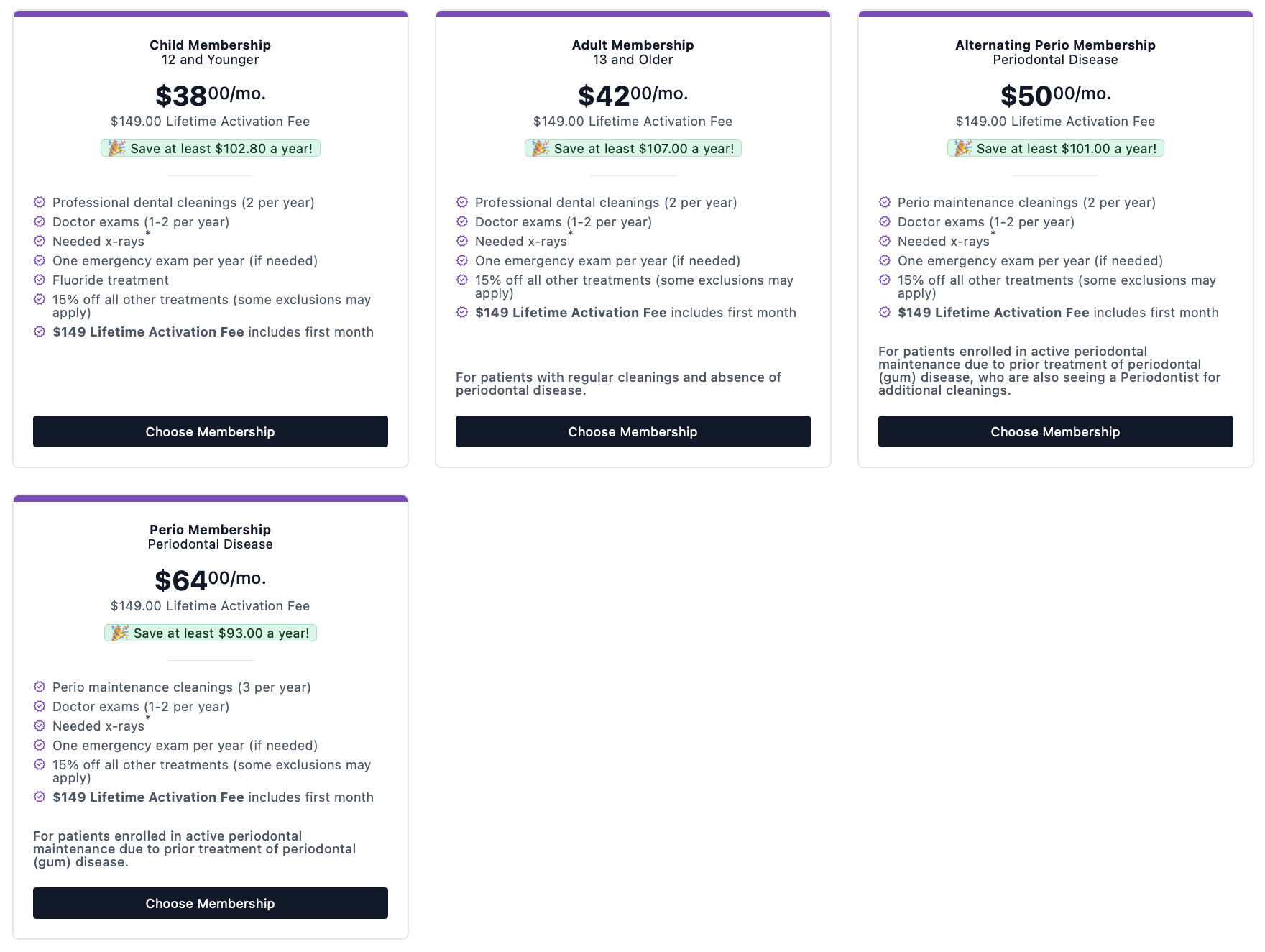 We offer a variety of membership options to fit your individual needs and budget. Whether you’re an adult, child, or have periodontal disease, we have a plan that’s right for you. See our full list of Membership Options here.